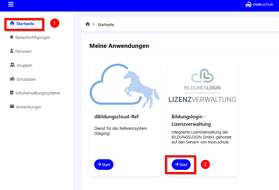 Hinweis: Die Lizenzverwaltung von moin.schule dient lediglich der Zuweisung und Organisation von Lizenzen. Es werden keine Lizenzen durch das Land oder den Betreiber bereitgestellt oder finanziert.