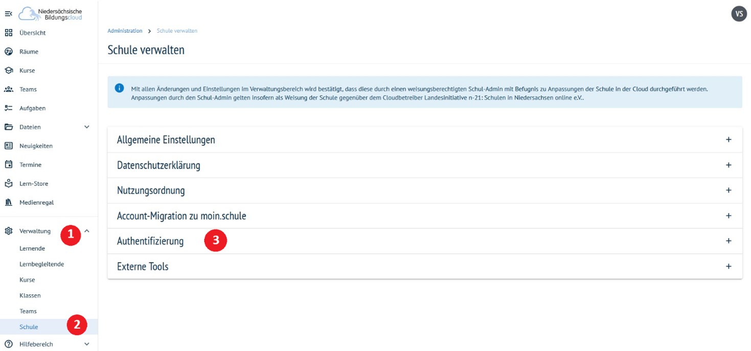 In der Liste auf den Punkt „Authentifizierung" (3) klicken.
