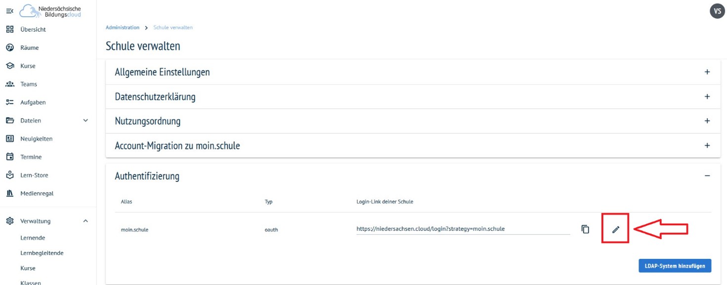 Es öffnet sich wieder die Übersicht „Schule verwalten”.