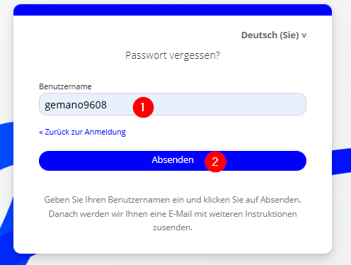 Wichtig: Die Voraussetzung für das Nutzen der Funktion „Passwort vergessen?" ist, dass am Benutzerkonto eine Benutzerkonto-E-Mail hinterlegt wurde. Informationen dazu sind im Artikel „Benutzerkonto-E-Mail durch Benutzer hinzufügen oder ändern" zu finden. |