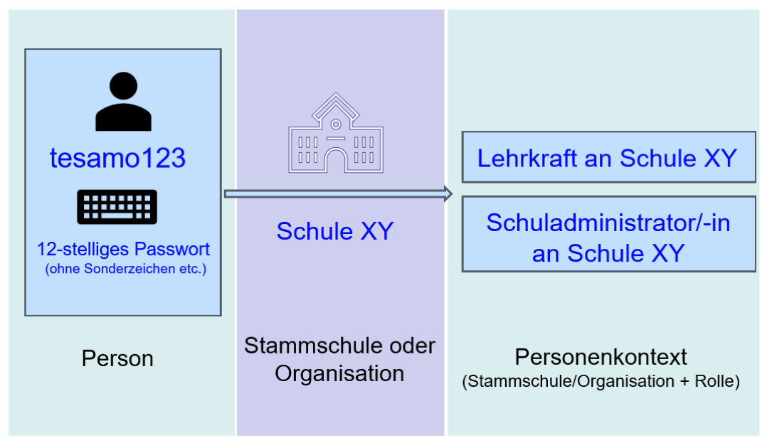Eine Person braucht nur einmal Zugangsdaten für alle Rollen und Schulen.